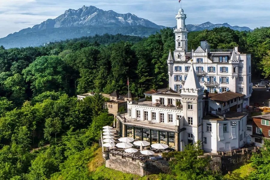 We will take the scheduled boat service across Lake Lucerne to Vitznau. On a spectacular journey on Europe's first cogwheel train, we ascend to the Rigi. After checking in at Rigi-Kaltbad, a relaxing break awaits you at the Mineral bath & Spa Rigi Kaltbad, 1,450 metres above sea level, you can relax in 35°C spring water – with a breathtaking panoramic view of the lake and the Alps.